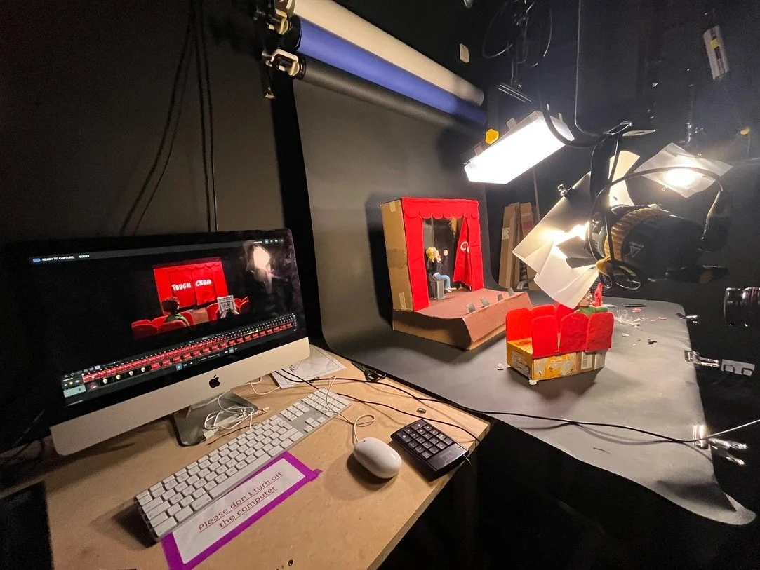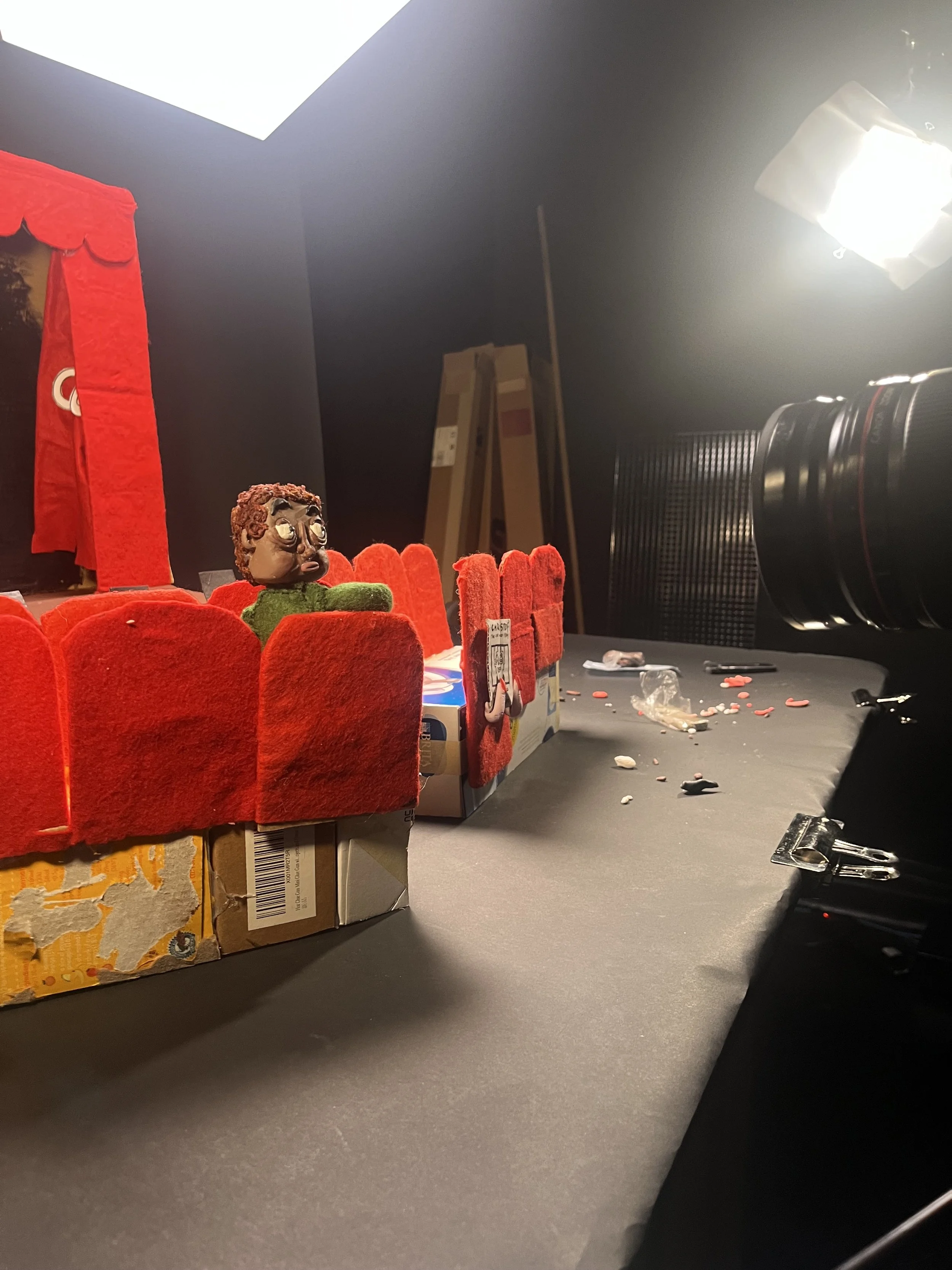 Tough crowd is my first stopmotion animation that I created using the software 'Dragonframe'. I hand made the set and characters using sculpy clay, recyled cardboard, wire, toy stuffing and scrap fabrics that I sewed by hand.