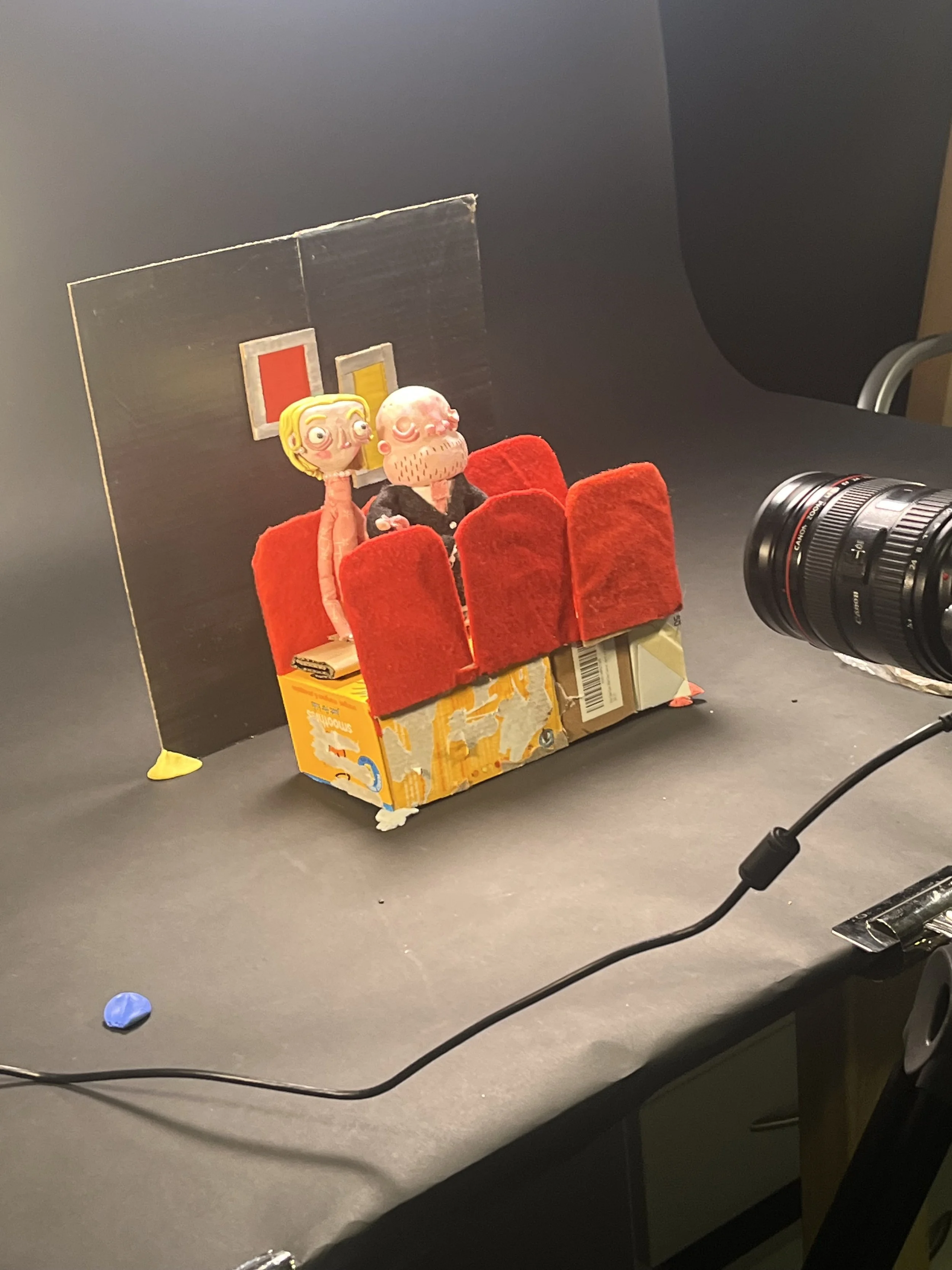 We were tasked with the concept of choosing an audio and creating an animation based around it. This audio instantly made me think of annoying noises at the cinema which inspired my story. This short is about an amateur one man play that is humorously being interrupted by the audience. These series of disruptions include dropping belongings, coughing, late comers and loud crowd members.